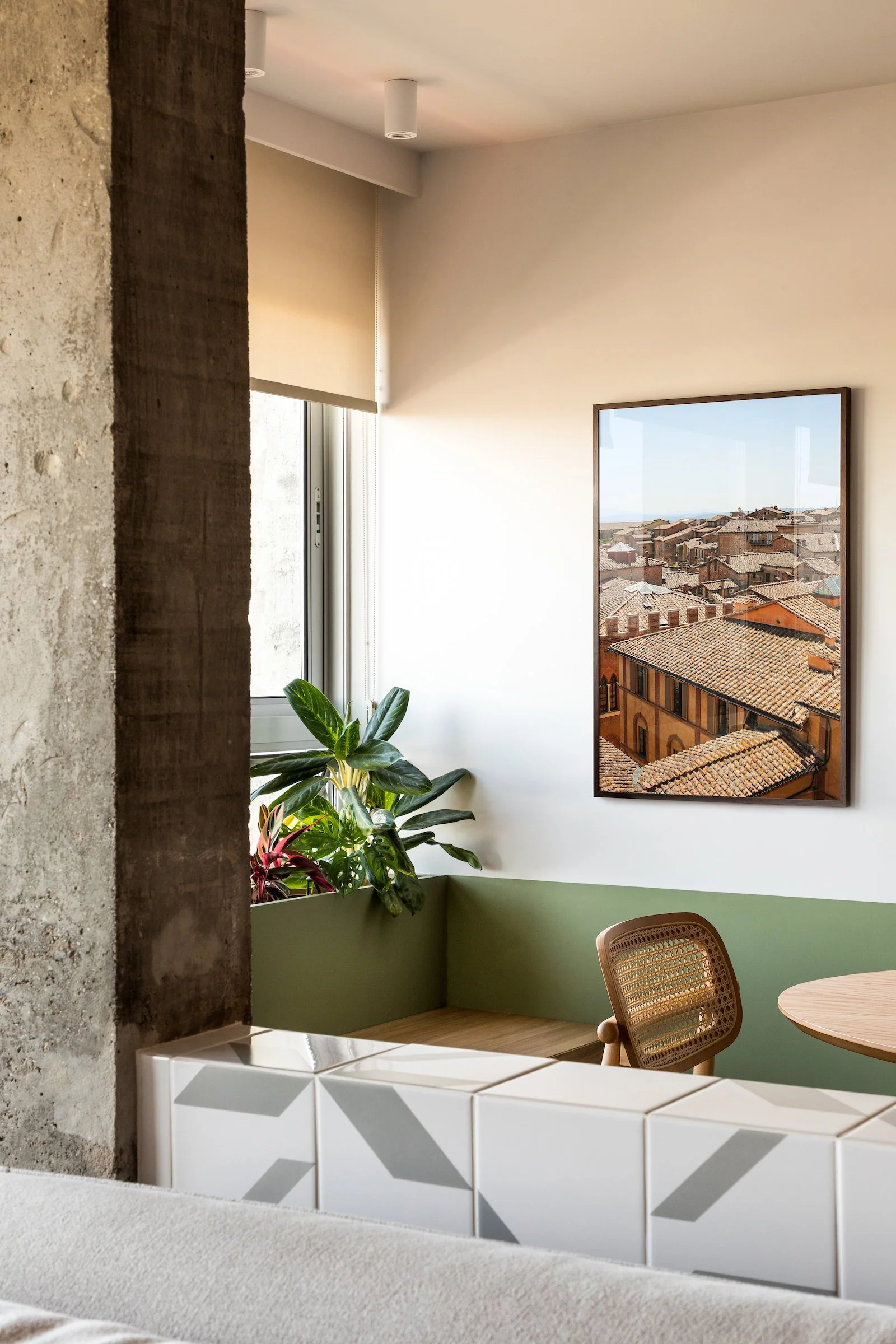 No mais, a proposta foi baseada em intervenções simples e de bom custo-benefício, aliando o novo desenho da marcenaria a soluções de pintura - em dois tons: terracota e verde - e também, no rebaixamento do forro junto ao hall do apartamento. Criando assim, setorizações, contrastes e atmosferas diferentes pelo apartamento. Porém, o destaque talvez seja o banco-floreira que desenhamos junto as janelas. Um novo espaço para o cultivo de plantas, conversas informais, leituras e até estudo.